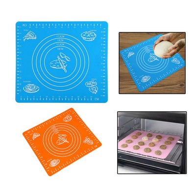 Baking mat, made from food grade silicone material.Size is 10.2x11.4"inch. Lightweight and easliy washable. Imprinted measuring scale help you control the dough's size precisely before you put it into the baking oven. The non stick pastry mat will not make your dough sticky. It is much easy to roll out the dough, pie, pizza, crust, brand, homemade biscuits and cookie dough. A countertop protector that stays put and sticks perfectly to your worktop. Welcome your logo