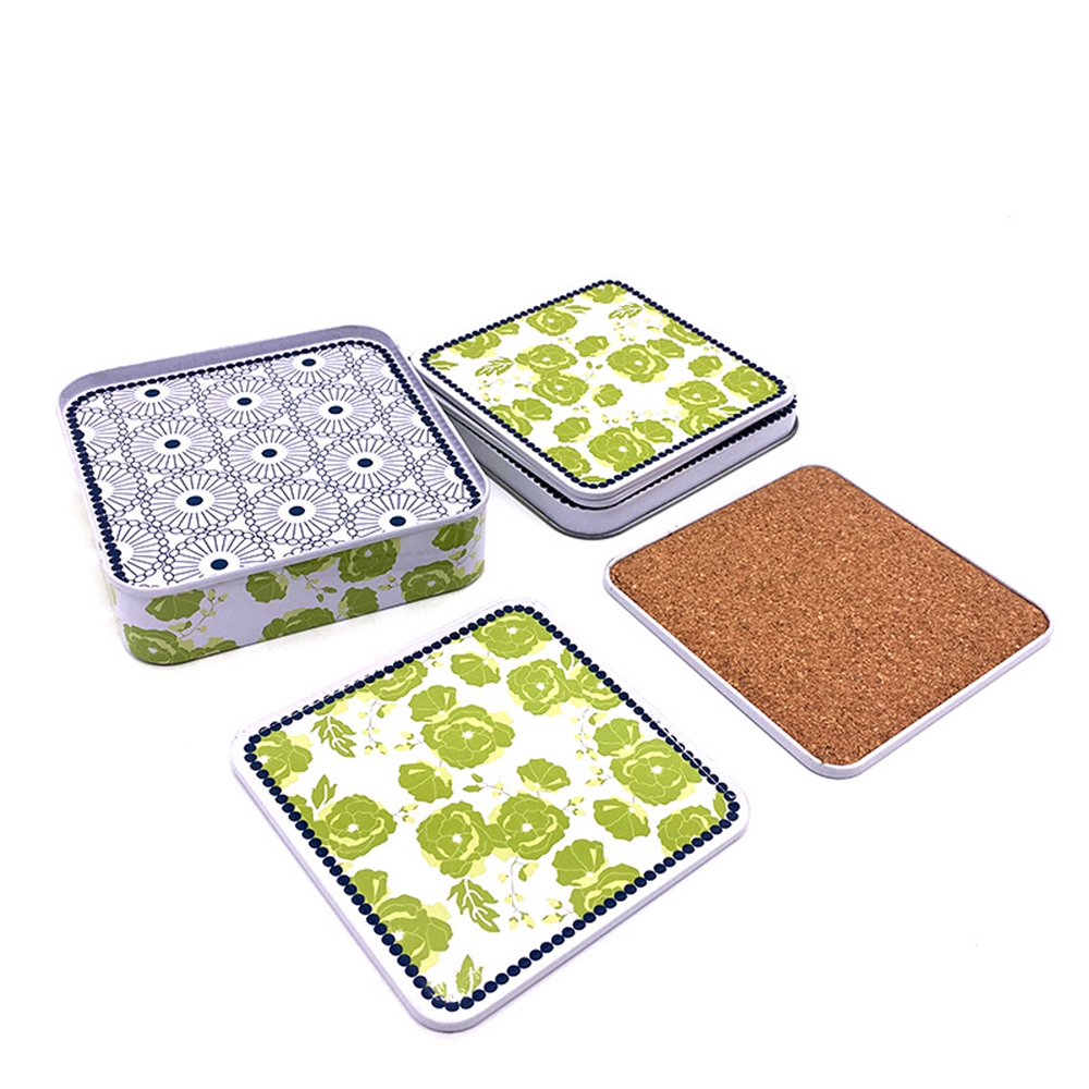 You will love this coasters set. 4 pcs are packed in one Tinplate Box. Cup mat and tinplate box all can be full color imprint. It looks like a work of art, a multi-purpose, decorate household decoration.