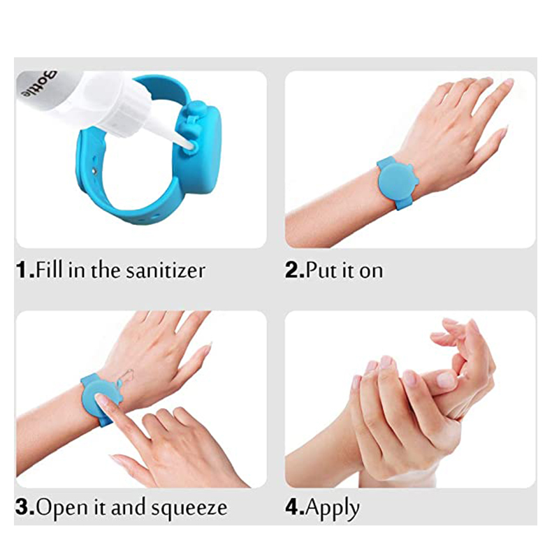 This hand sanitizer holder wristband is easy to use anytime and anywhere.Use the included squeeze bottle for easy refills. Encourage your loved ones to clean their hands while at work or school, traveling or shopping. Adjustable straps make this hand sanitizer bracelet dispenser great for children, teens, and adults.