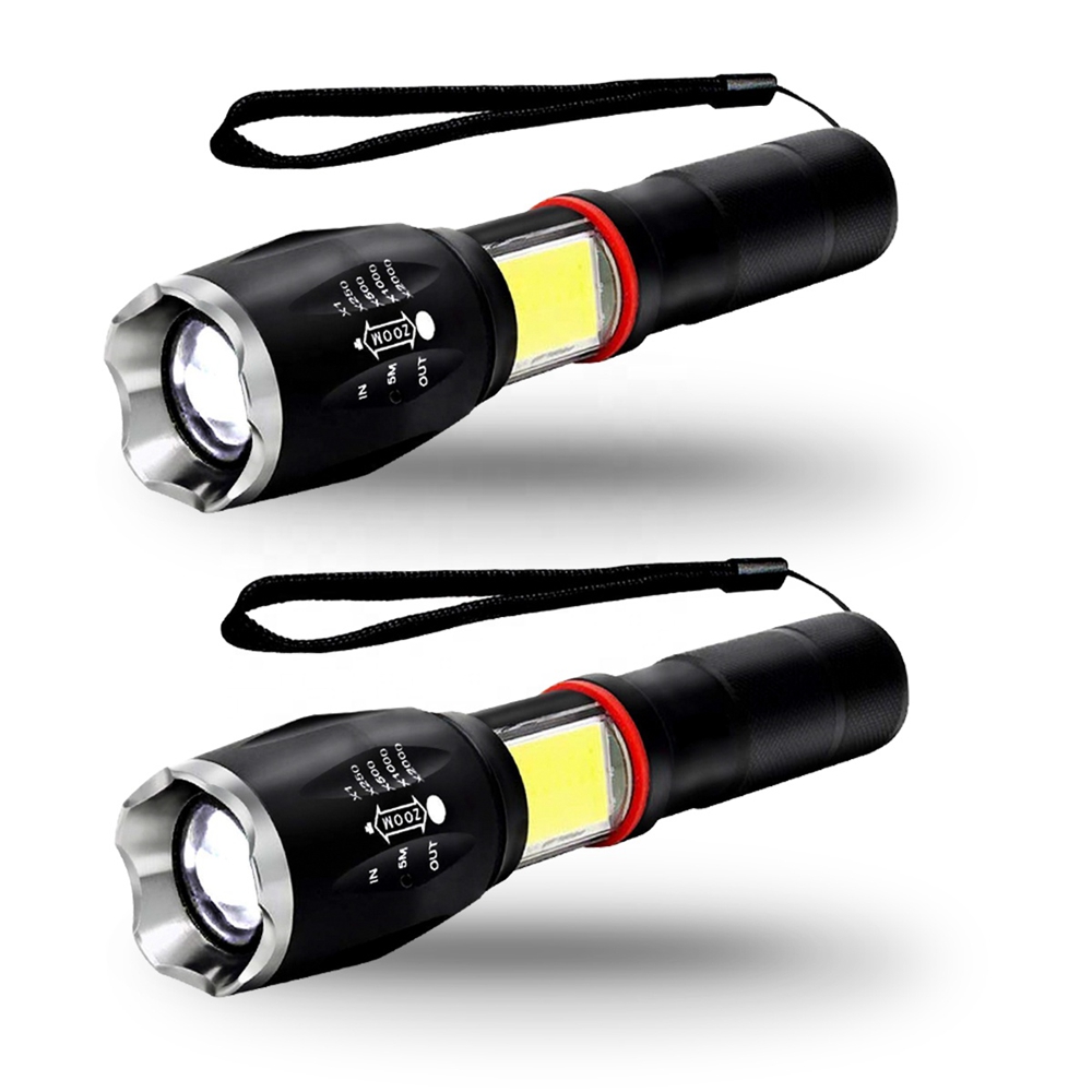 You can take the flashlights at anytime or anywhere. Water resistant, anti-abrasive, skid proof, compact design makes it for all situations, outdoor activities, camping, hiking, fishing, home use and as a powerful emergency light. Powerful T6 type LED with zoom function and generates a brilliant large area floodlight or a perfectly focused spotlight.Runs on either a rechargeable battery or 3 AAA batteries. Adjustable focus with 3 modes: Full, Medium, Strobe. Also with a COB light.