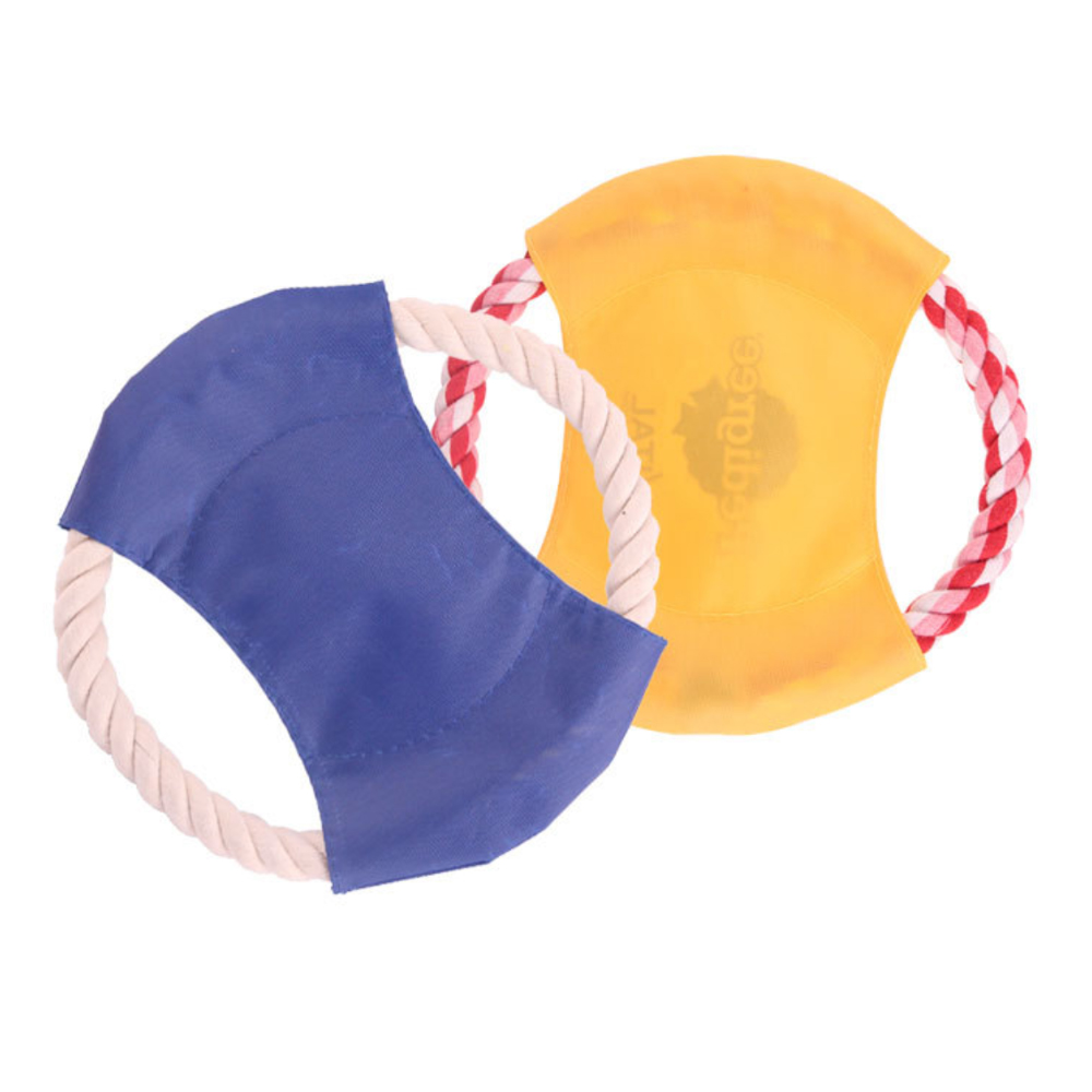This Cotton Rope Flyer is designed for a high-flying game of fetch with your dog in the water, grass, or snow, and the perfect solution for fitness, exercise, and training. It is safe on your dog teeth and designed for long-lasting indoor/outdoor use. The rope allows for a challenging game of tug-of-war and the flyer is an added bonus for fetching interactive play. Welcome your logo art on it.