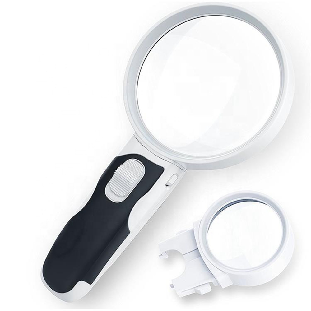 This reading magnifier with 2 easily interchangeable lenses (5X,16X), when you can change the magnification you need to suit any task or hobby using the simple lens release system. LED lights on the handle put out the perfect amount of light when you need to read or work in the dark. Now you can read everything in perfect clarity. Stamp and coin collections, reading maps, watch and computer repair and inspecting jewelry is now crystal clear under the premium glass lenses and durable ABS plastic.