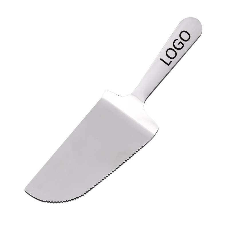 This cake server has a has a serrated edge to cut cake and pie easily. Made of 410 stainless steel material.A good helper in the kitchen. Welcome your logo on it!