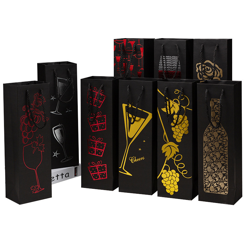 With high quality black kraft paper and durable handles, this wine paper bag is perfect fit for standard liquor bottles and large format beer bottles as well as wine. You can have your own logo and slogan printed with metallic foil logo with gold, silver or black color, which makes your bag look more elegant. Perfect Gift Bag for Birthday, Christmas, Thanksgiving, Graduation, Weddings or any other occasion.
