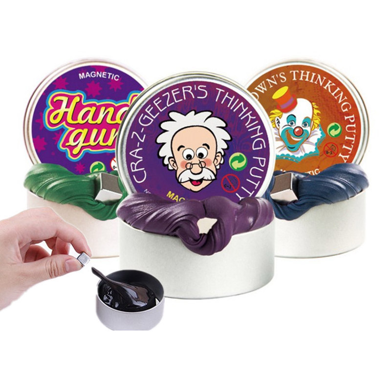 Relax and play with this creative putty. Comes With A Magnet And Four Eyes. Stretch, squish, cut and squeeze! It's non-toxic silicone, never dries out & is easily removed from solid surfaces. Shown on website is 50gram silly putty with tinplate packing. Comes In Various Color Options. Size can be customized.