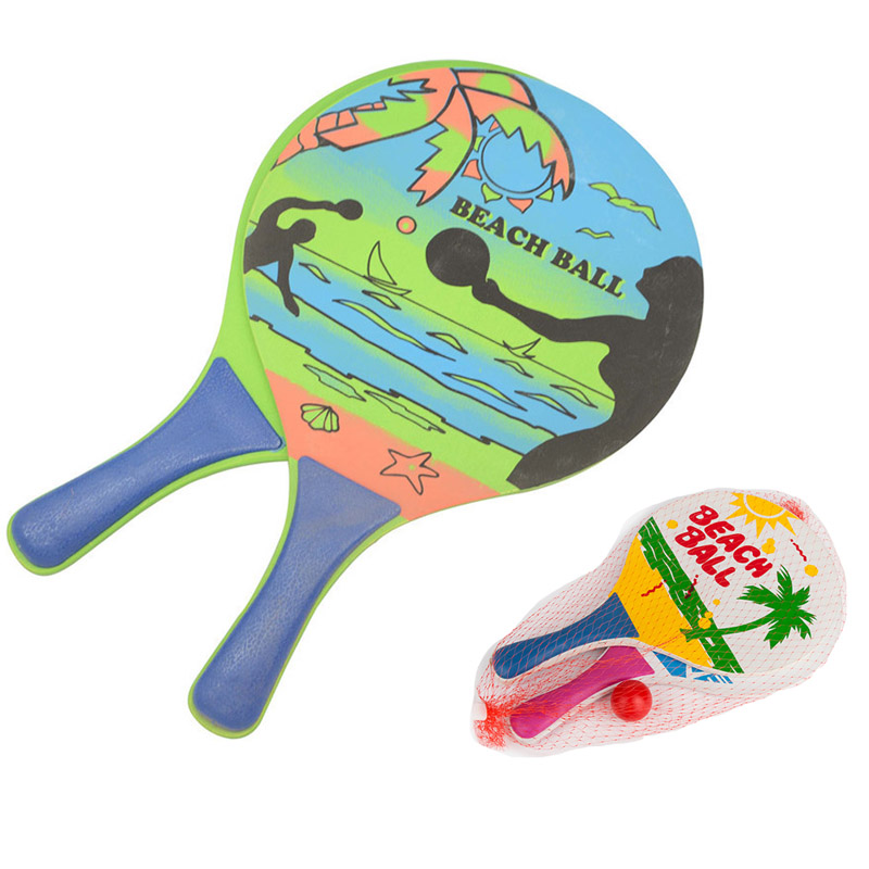 Comes with two paddles and 1 ball packed into one mesh pouch . Made from wood, standard size 13"x7 1/4". You can play anywhere - no net needed! Great way to stay fit and have fun! . Perfect for backyard, park or beach! Create memories with family and friends that will last a lifetime.Full color design imprinted on both sides for your theme activities