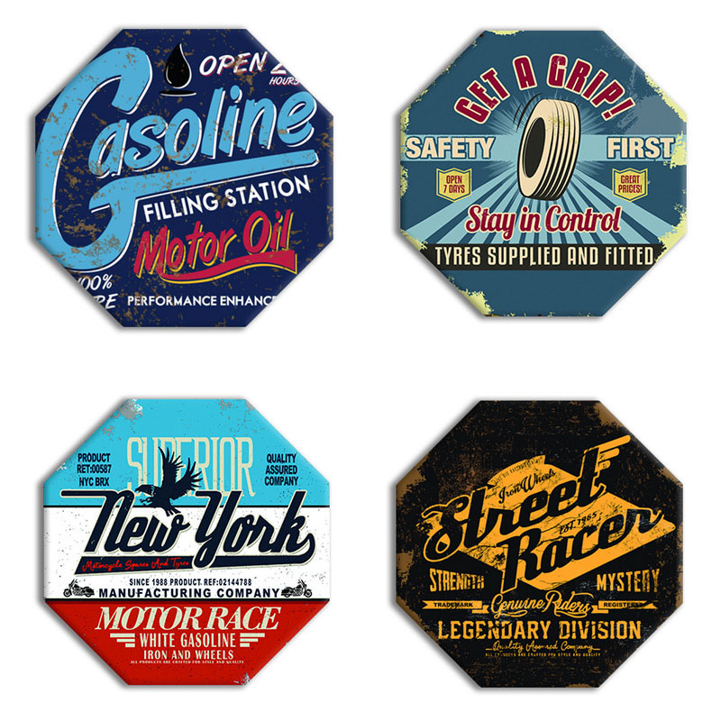 Retro vintage tin signs add nostalgic fun to home, garage, man cave, mechanics, auto services, bar, lounge, patio, cabin, basement, den, game/entertainment room, office or virtually any space.High quality print that will stand the test of time. Made of high-quality tinplate. Pre-drilled holes that you can be nailed or taped to the wall, or hang up with hemp cord or metal wire. We have many different shape for your choosing. Wecome your full color logo art printd on it !