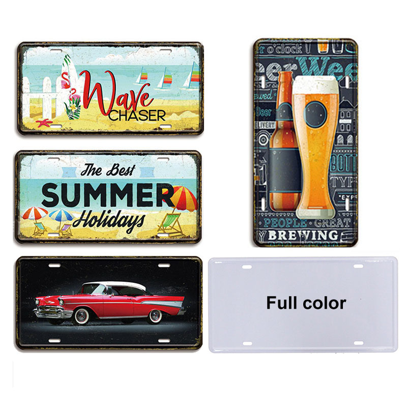 Retro vintage tin signs add nostalgic fun to home, garage, man cave, mechanics, auto services, bar, lounge, patio, cabin, basement, den, game/entertainment room, office or virtually any space.High quality print that will stand the test of time. Made of high-quality tinplate. Pre-drilled holes that you can be nailed or taped to the wall, or hang up with hemp cord or metal wire. We have many different shape for your choosing. Wecome your full color logo art printd on it !