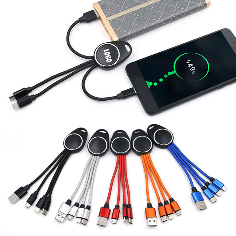 One cable with three connectors , can charge for IOS, Type-C and Android at the same time , nylon braided material easy to store and resistant to stretching, custom your led logo color , charging at night is not afraid of darness. As a keychain you can carry it to anywhere.