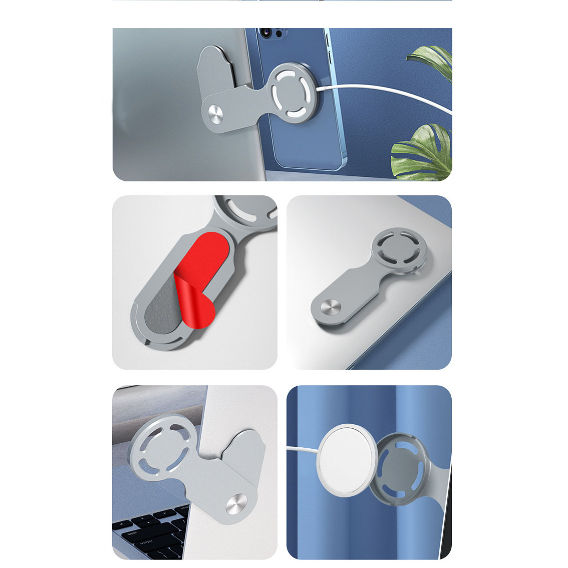 Wireless charging can be hidden in it. The phone bracket for laptop monitor allows to use phone and computer comfortably at the same time. The phone also can be Wireless charging when you use it. Made from plastic, fitting for all kind of flat computer display. The metal piece that glued on phone helps it to attach to the magnet on the bracket quickly, can firmly hold the majority of phones even wearing the phone case. small box packing. 6.1" L x 2.3" W