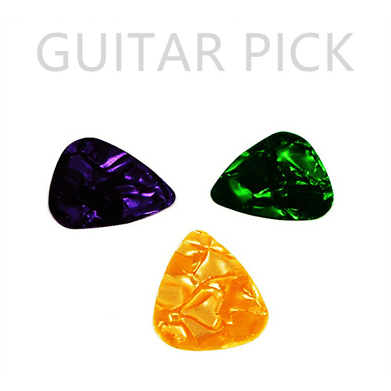 The dazzling instrument plectrum is made of celluloid, which is suitable for plucked instruments. 1.18" L x 0.98" W
