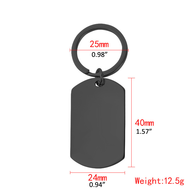 Made of polished stainless steel. The dog tag contains a key ring. Edges are smoothed, with bright luster, and strong texture. No fading, no deformation, no rust. The price is for Silver color.