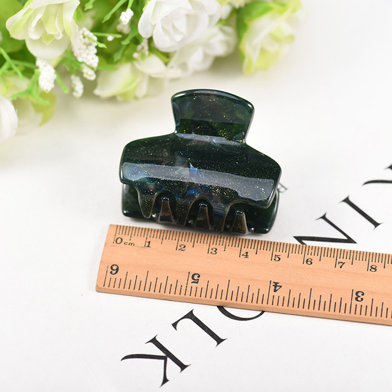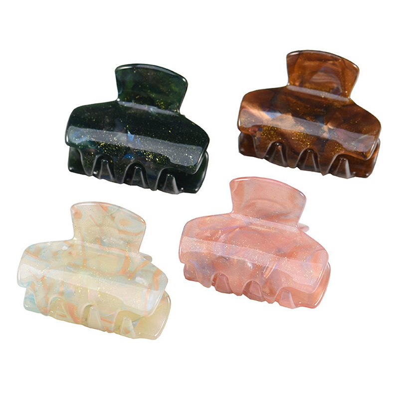 Made of Acrylic. It is fashion and cute. The clips have a diameter of 5cm and can hold hair tightly.