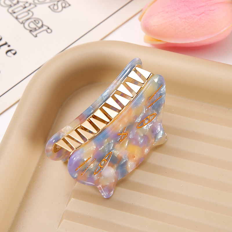 Made of Acetic acid. It is fashion and cute. The clips have a diameter of 10 cm and can hold hair tightly.