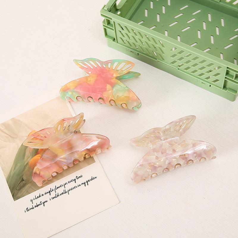 Made of Acetic acid. It is fashion and nice. The clips have a diameter of 7.8 cm and can hold hair tightly.