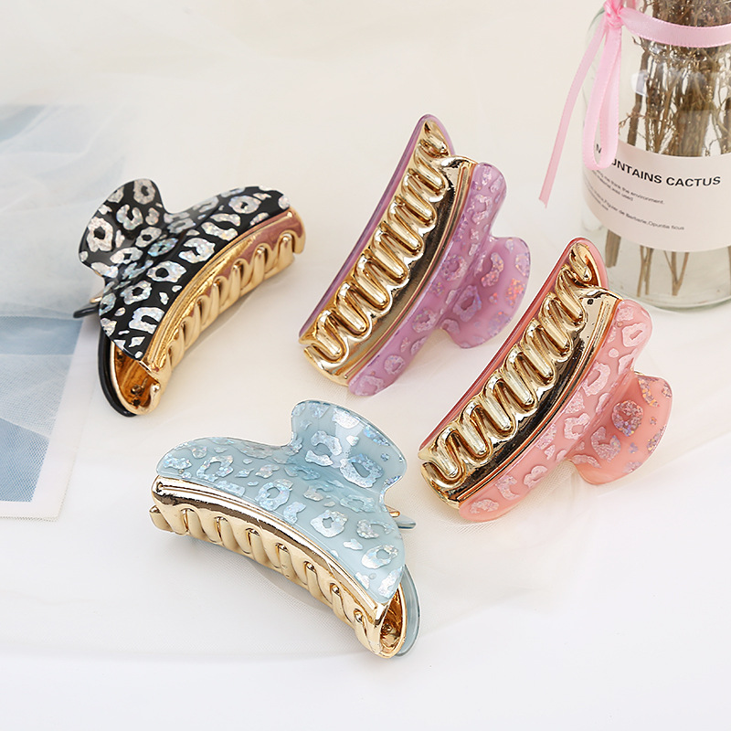 Made of Acrylic. It is fashion and elegant. The clips have a diameter of 9 cm and can hold hair tightly.