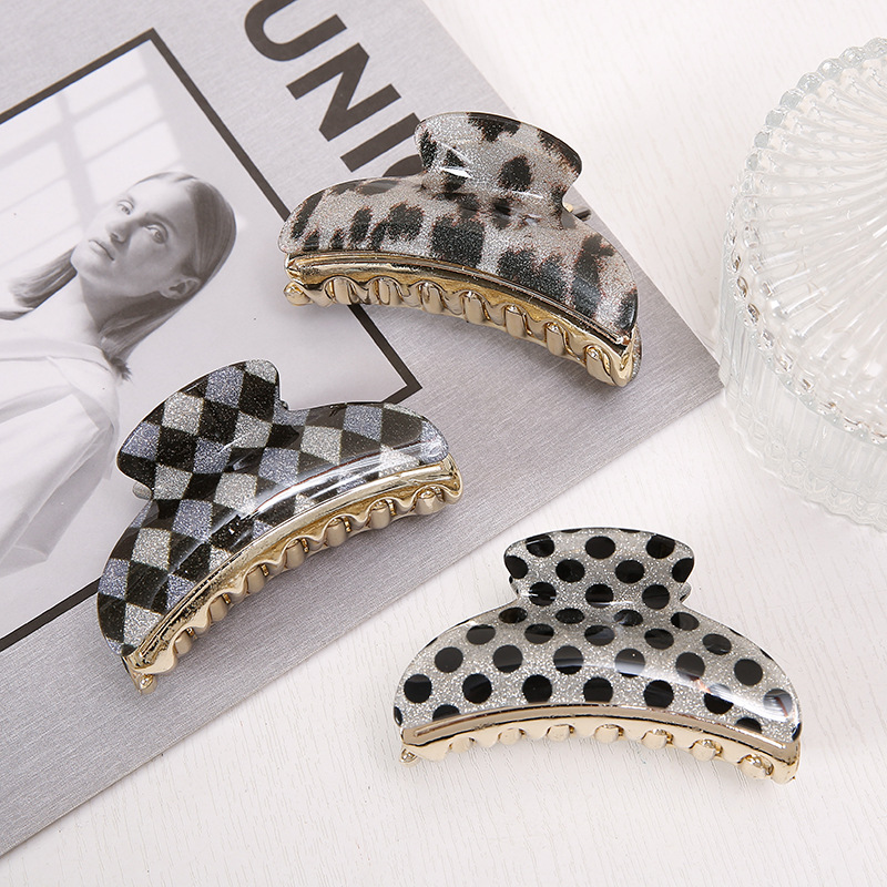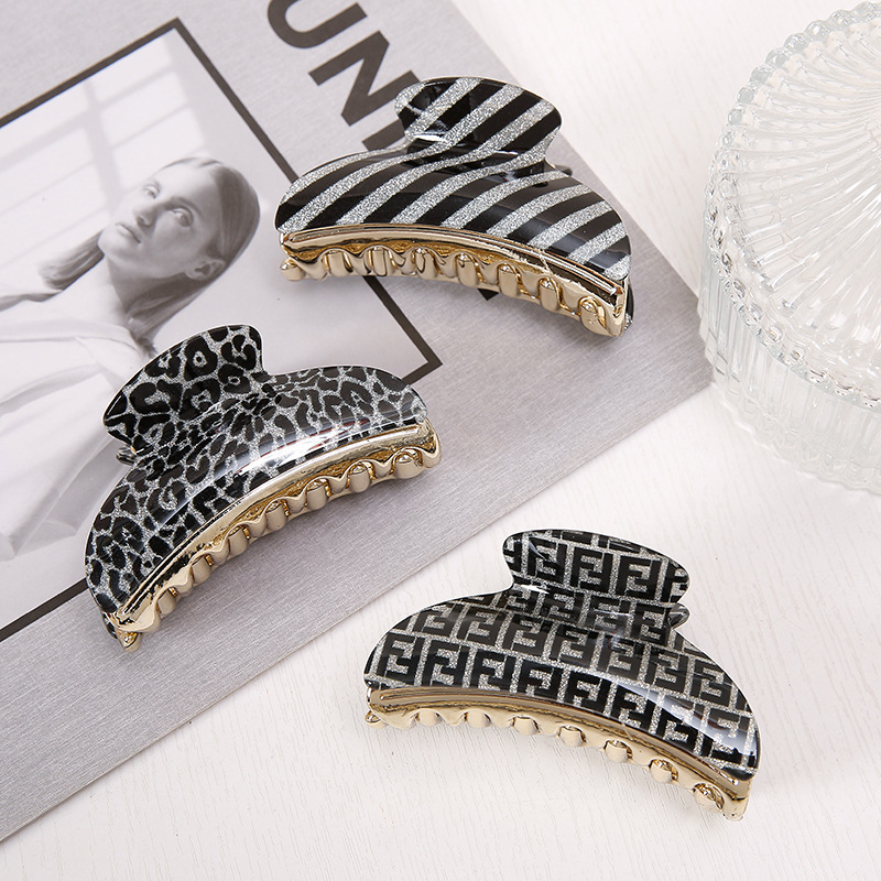 Made of Acrylic. It is fashion and Clasic. The clips have a diameter of 9 cm and can hold hair tightly.