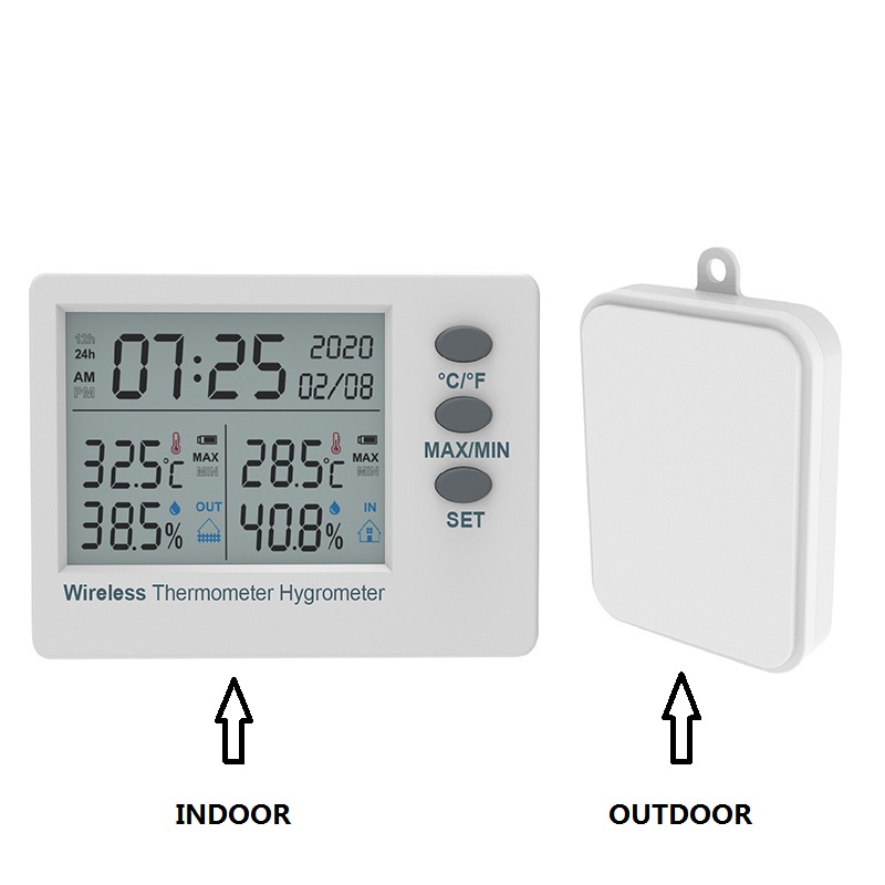 The Wireless Indoor and Outdoor Weather Station with Hygrometer is the ultimate tool for tracking the climate in and around your house. With temperature and humidity readings this weather gauge provides all the information needed to keep your environment well-regulated at all times.The wireless remote sensor transmits up to 99 ft. For temperature ranges of 14F to 158F or -10C to 70C. 2 AAA Battery not included.