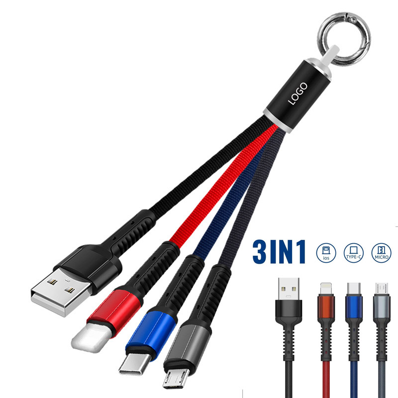 Boost your brand's visibility with our 3-in-1 Light-Up Charging Cable with Keychain! The Trey features USB-C, micro USB, and 5-pin adapters, allowing you to charge both Android and Apple devices. No need to carry multiple cables when the Trey provides all the connectors you need in one convenient package! What's more, our laser engraving technique reveals an LED light beneath your logo, ensuring that it stands out. This high-value, highly impressive product will give your brand daily exposure!