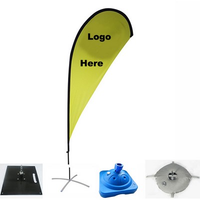 This advertising flag is a great way to draw attention to your business. The pole is made of aluminum and fiberglass; the flag is made of polyester; and the cross-shaped underframe is made of steel with a water bag attached. The colorful design will help you stand out either at an event or a business location.