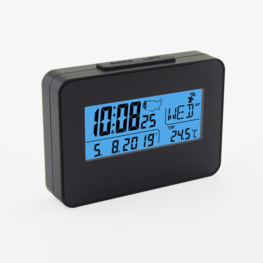 Radio controlled LCD digital clock with hours, minutes, seconds, calendar and temperature displays. will always be accurate to the second. It automatically receives and synchronizes to the WWVB time signal in the U.S. Big place for logo imprinting. Battery not included.