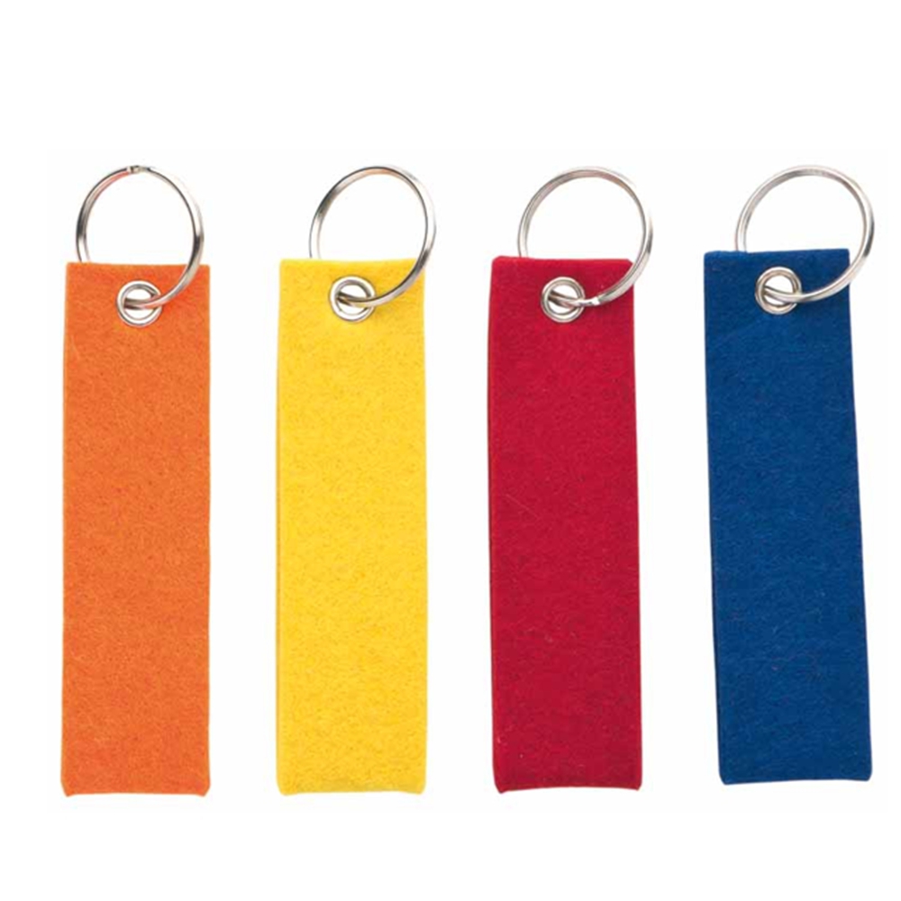 This keychain with key ring is manufactured from colored felt in a 2 mm thick quality. Make your own unique keychain with a variety of colors and text. This makes an ideal product for giveaway.
