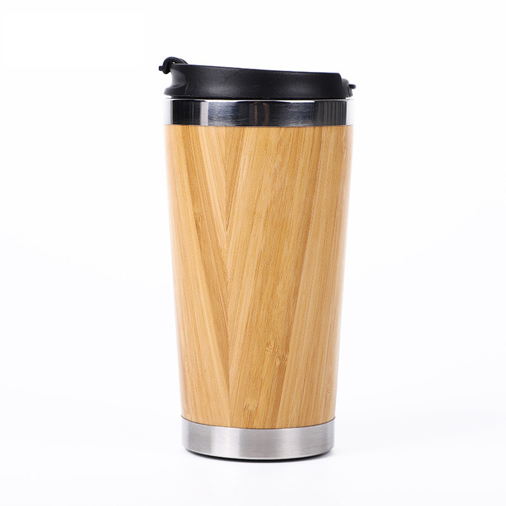 Travel coffee tumbler. It's made of food grade stainless steel and bamboo material. Bottle is constructed with high quality stainless-steel and then hand wrapped in bamboo creating a uniquely insulated design. This ensures that your drinks stays hotter or colder longer.