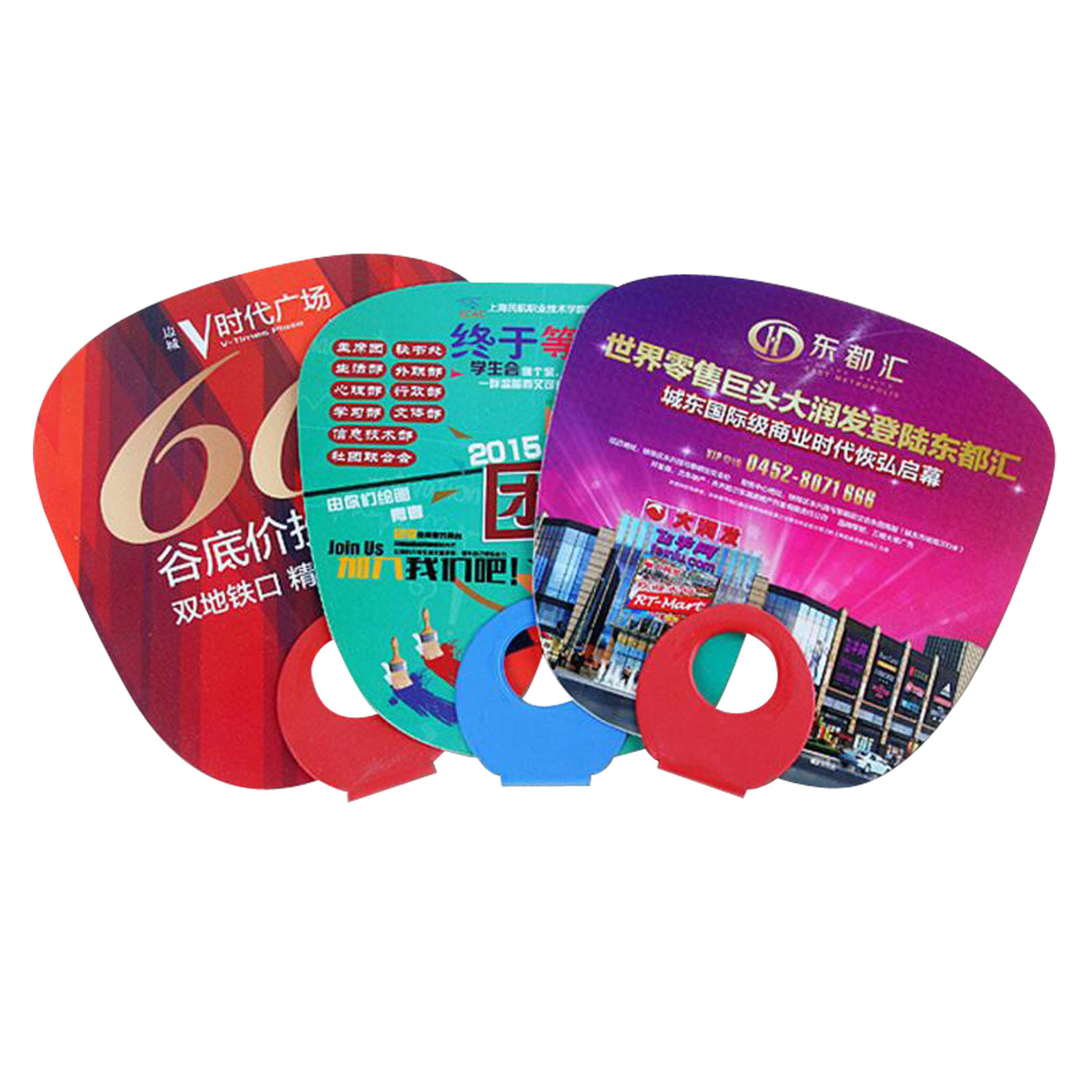 This oval advertising hand fan is made of PP material and has a round handle. Portable and practical in hot weather. It is a great affordable giveaway for advertising with a large imprint area. PMS color matching is available