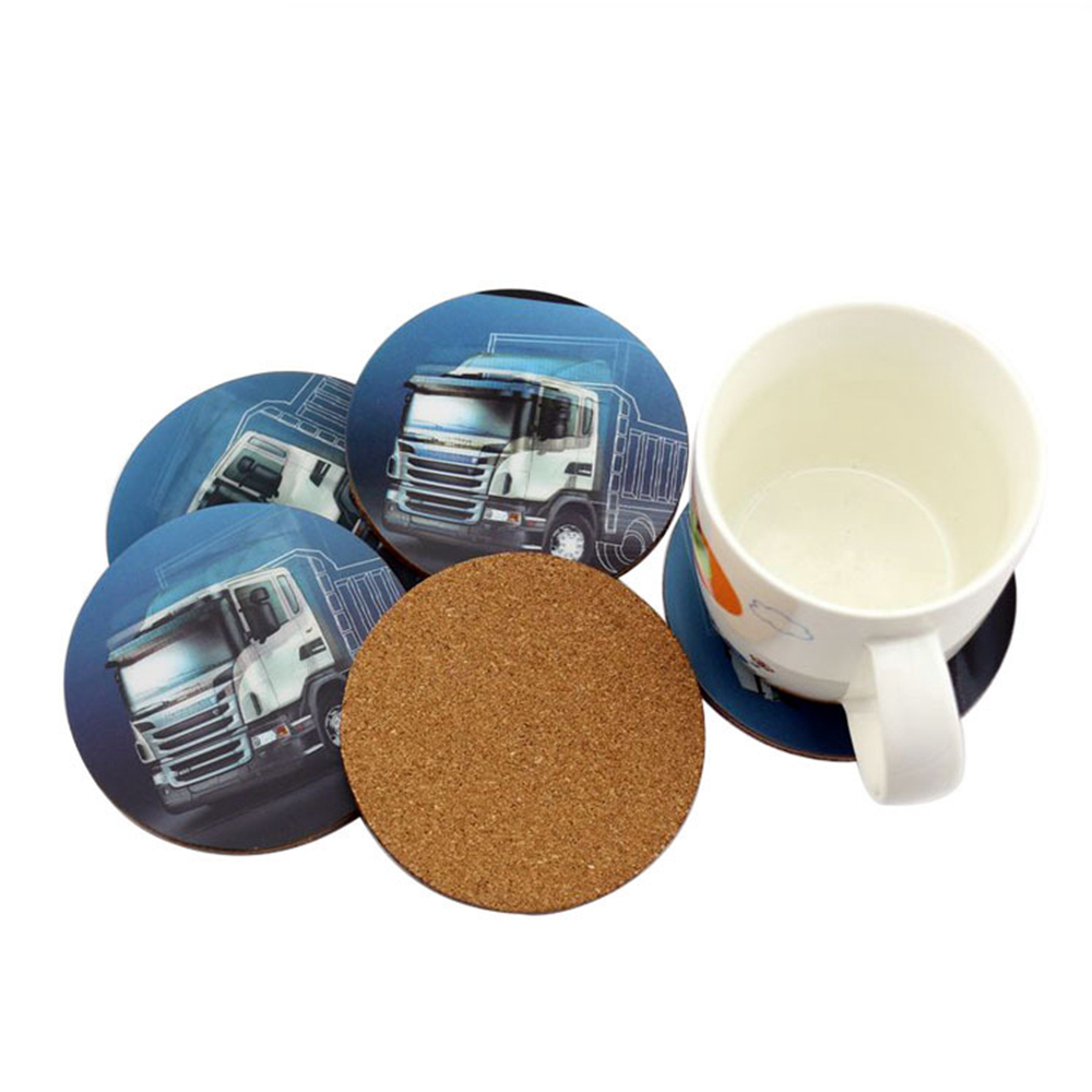 These round absorbent coasters feature a protective cork backing and durability. Unlimited designs and fits most cup sizes. Full-color imprinting on one side. This makes a great promotional gift for home or office.