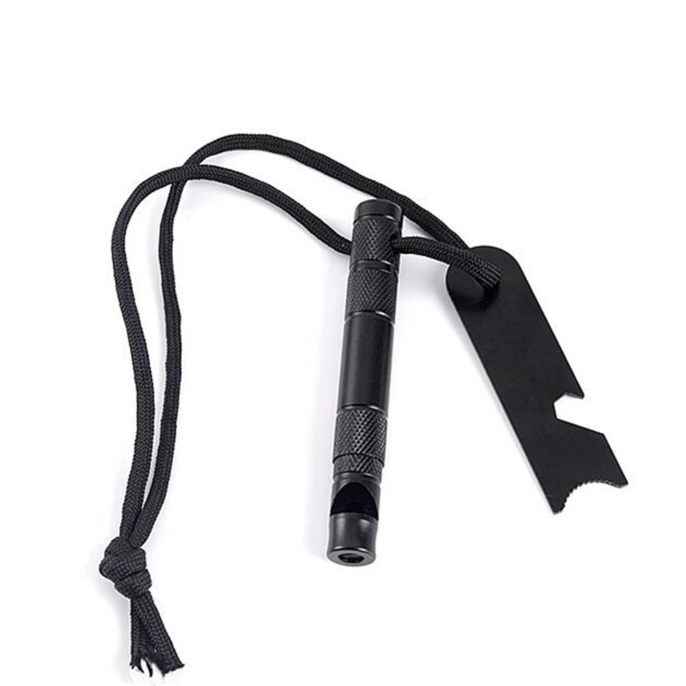 Mini portable whistle with multi-functional components, easy to carry and can be of good use Survival tool assembling emergency whistle, flint, compass, ruler and can opener, useful in many situations Small sized whistle, can be carries on your key chain and you feel almost no weight Stainless steel surviving tool whistle, your ideal little kit to bring with you when going out Good option as a small gift idea to offer to friends, trainees and family members