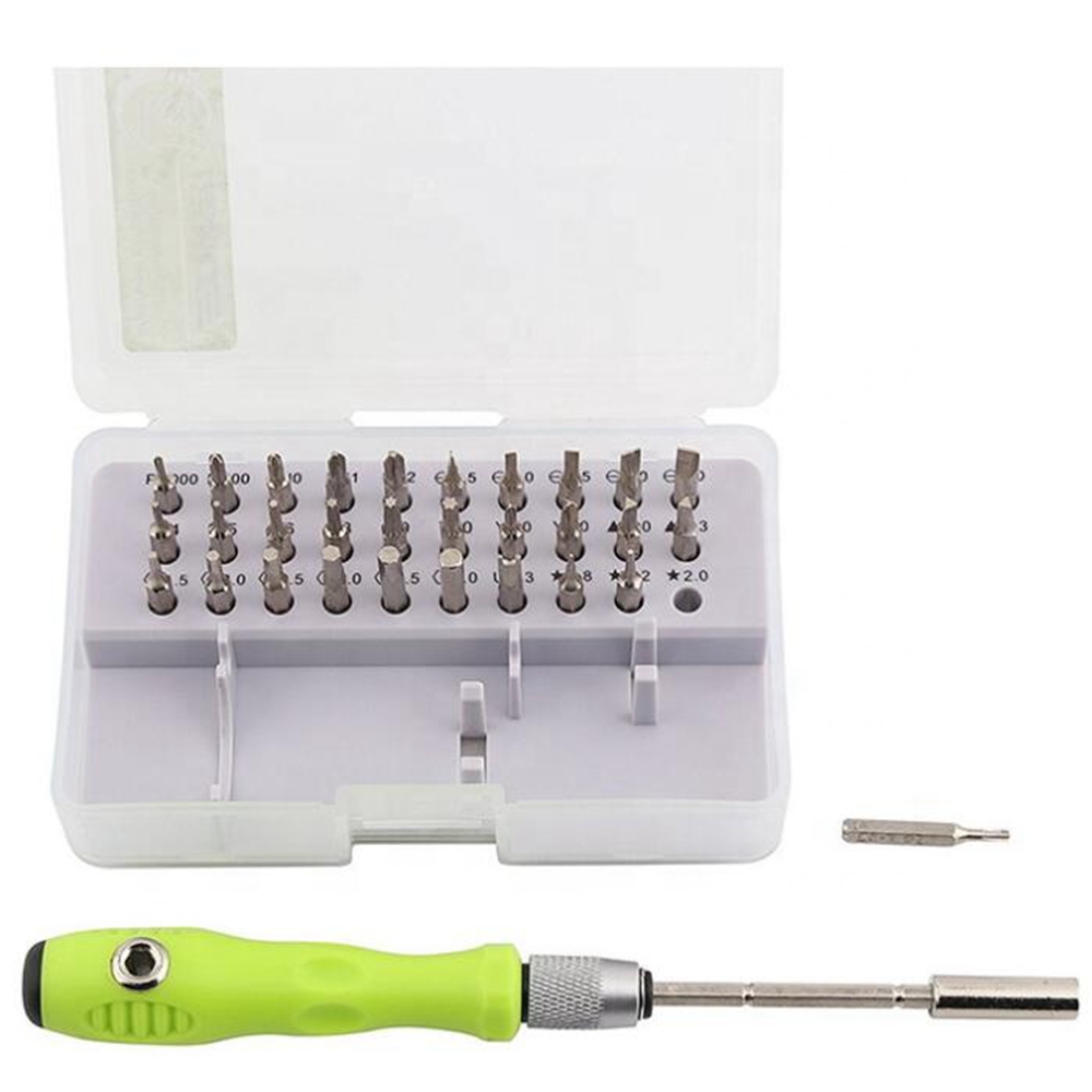 32 in 1 Precision screwdriver set is professional hand tools, Non-slip Screwdriver is machined from a single piece of aluminum, and cover with the silica gel. Screwdriver handle has a switch to make it easy to turn quickly. Press & Push design enables you to take out bits for saving hassles. Perfect for working on machines,cellphone,sunglass,cameras, RV, etc. 30 different kinds of screwdriver bits,which are made of chromium vanadium Alloy Steel, and meet all your need.Come with Well-organized Box