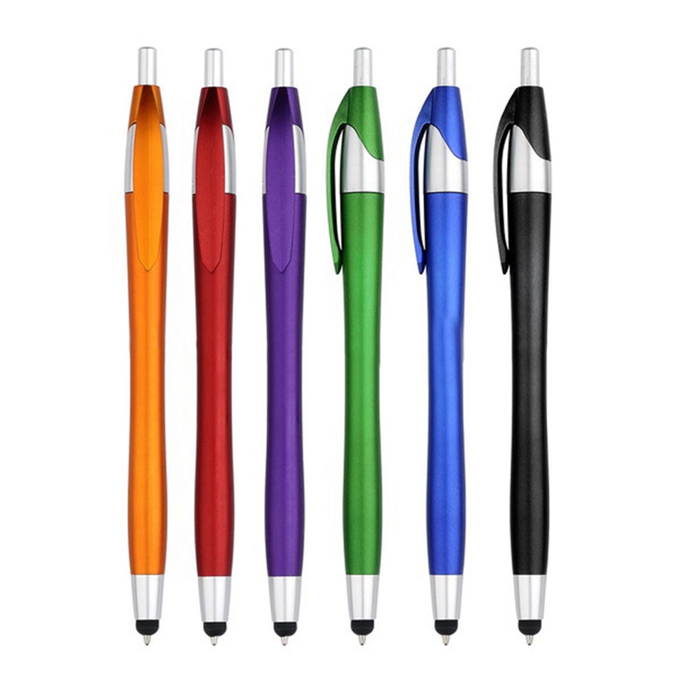 This promotional pen is perfect for brand exposure!The ball pen is made of ABS material with metallic color coating, it features with a half-round silicone stylus,along with a push action. Great giveaway for any event or trade show. Ensure your clients remember you when using it everyday.