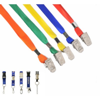 This polyester lanyard is durable, comfortable to wear, and affordable. Lanyards ensure that employees, students, attendees, and visitors have their identification at all times. Size: 35 2/5"L x 2/5"W. Custom imprint and attachments available (see photo).