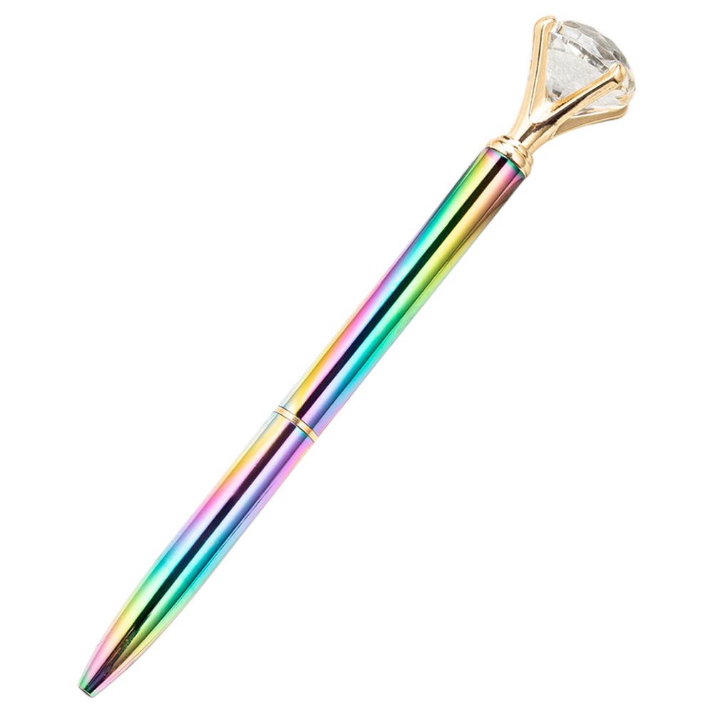 With a glitter, shiny and big diamond on the top of this pen, it is not only a writing tool, but a gorgeous decor and a great gift for festival, birthday, wedding and anniversary. These ballpoint pen are made with colorful metal. Eeasy and smooth on handwriting. Also, confortable to hold. Only light rotation needed to write. Welcome your brand design.